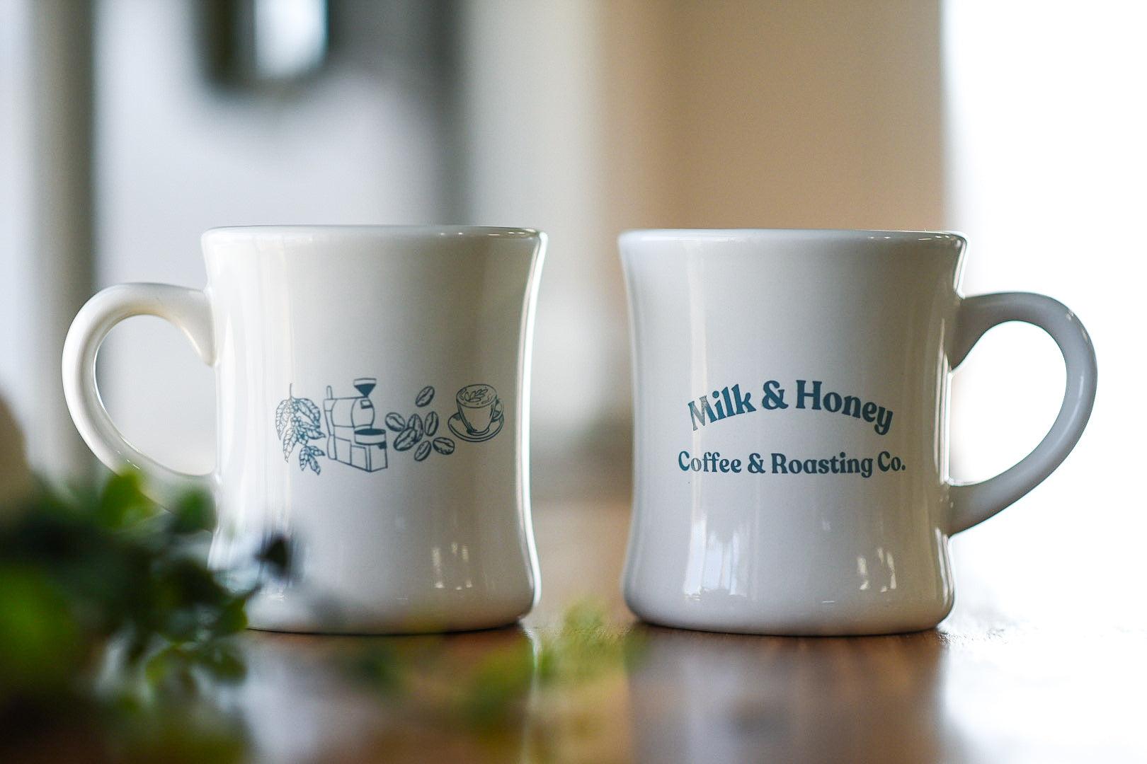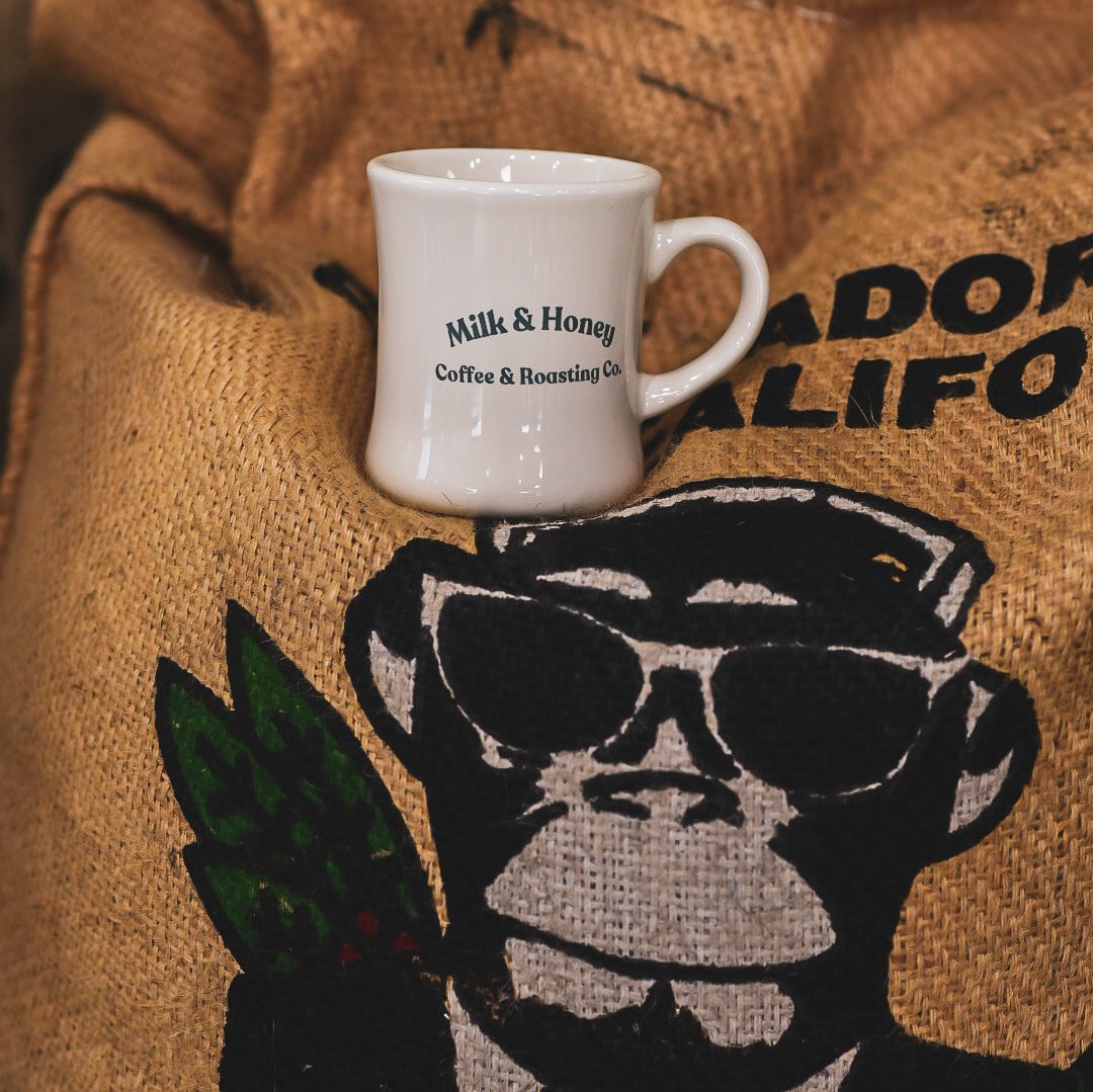 Introducing the Diner Mug from Milk & Honey Coffee Co. This classic mug is the perfect companion for your morning coffee, with its nostalgic diner style and sturdy construction. Durable and sturdy, start your day with a touch of charm and reliability with the Diner Mug.