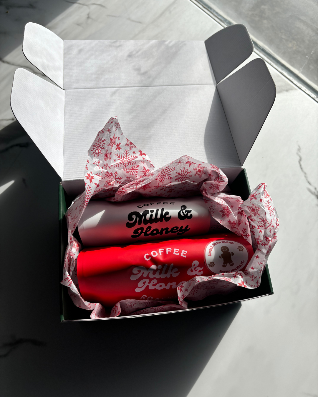 Get your caffeine fix this holiday season with our Holiday Coffee Bundle! This bundle includes a 12 oz bag of our festive Jingle Bean blend and an 8 oz bag of our Holiday Single Origin Kenya AA Muthuthiini.